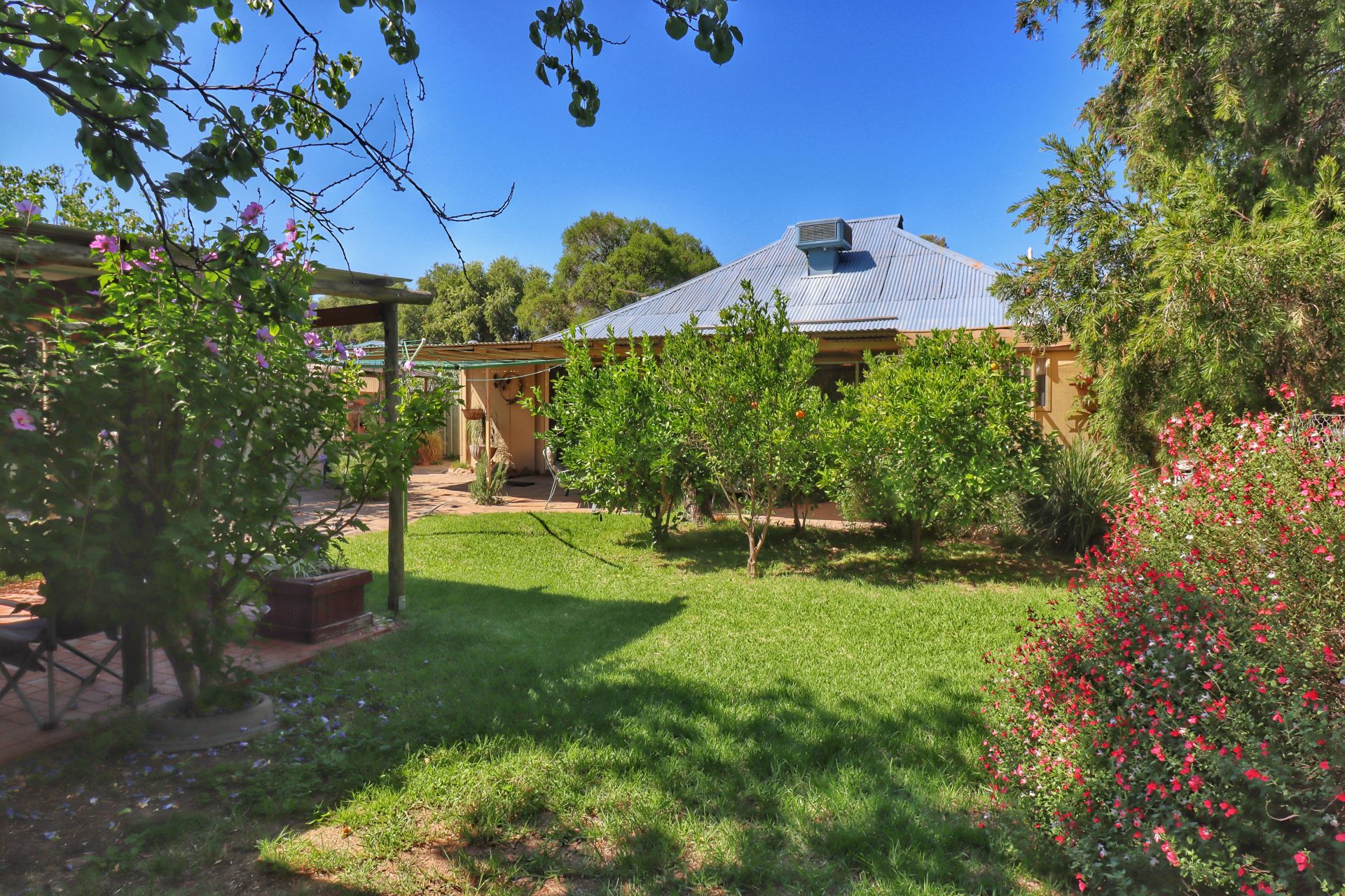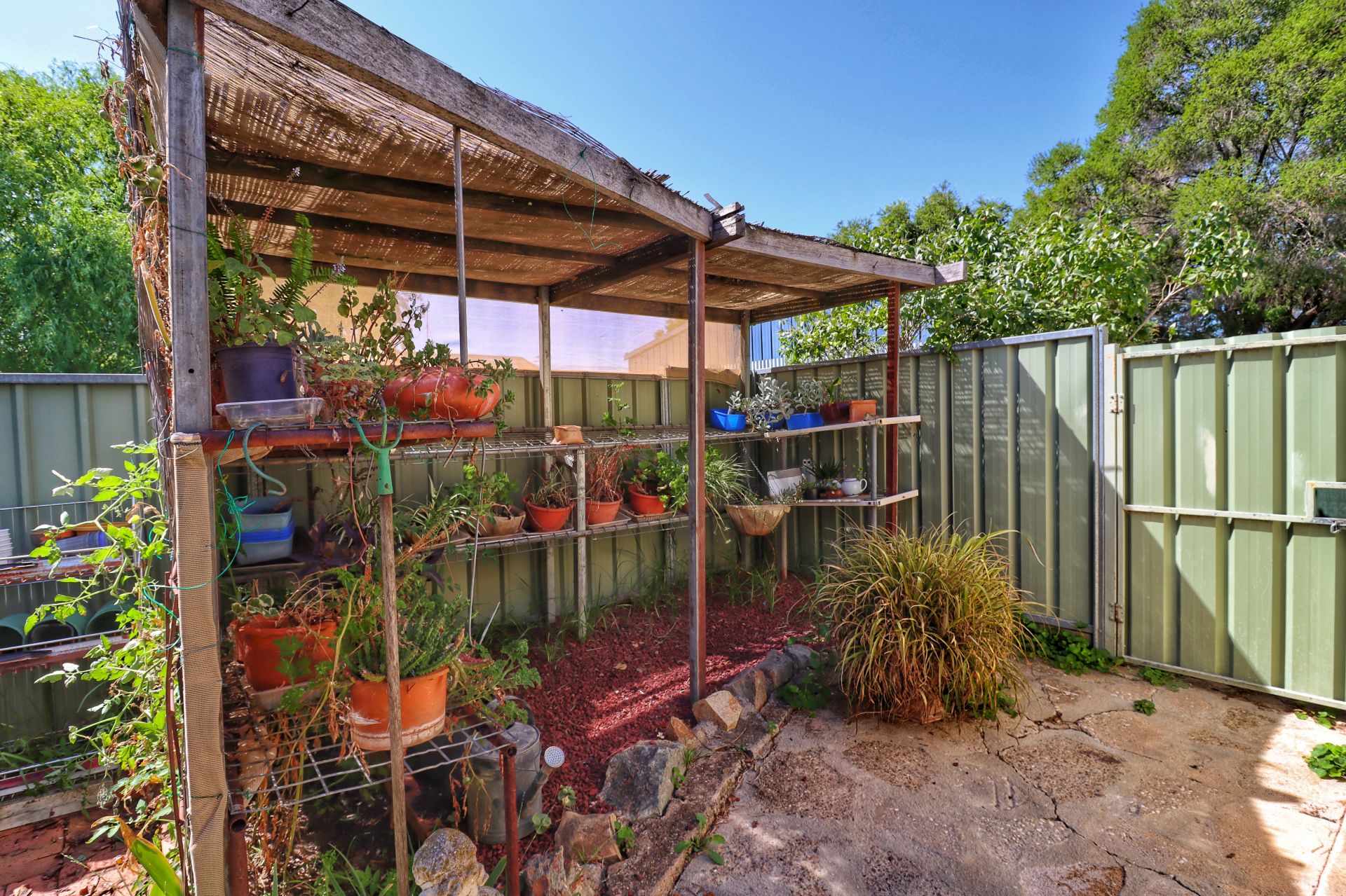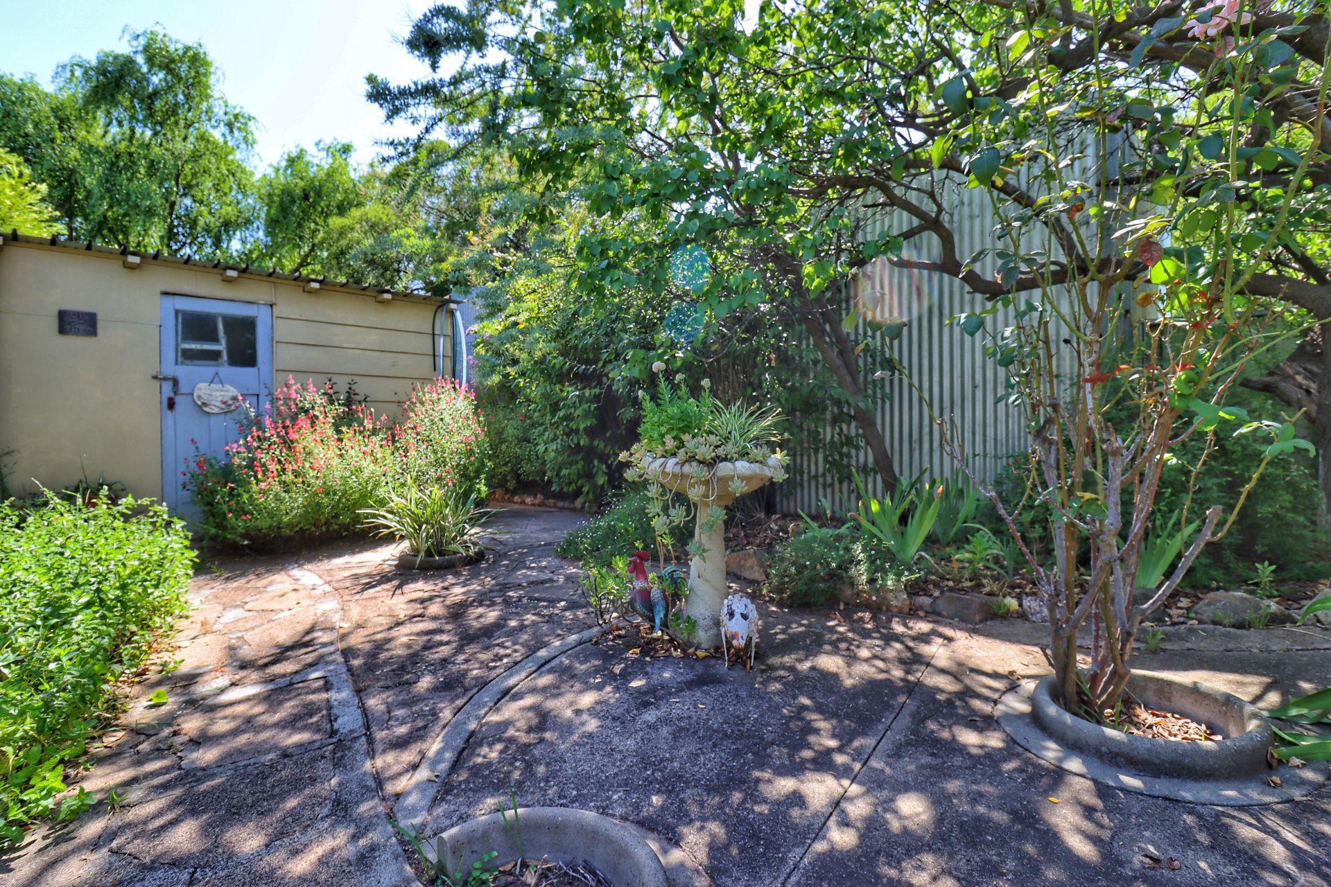 The backyard is fully fenced with beautiful established gardens and fernery.